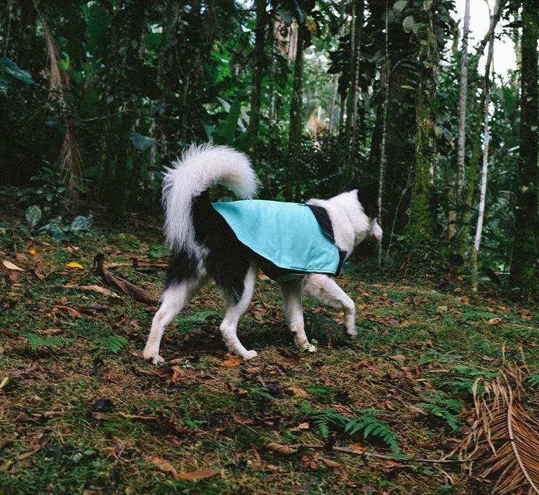 The Mint Winter Coat for dogs is a durable, comfortable winter coat. It is made from cotton duck fabric with a fleece lining inside and soft corduroy around the neck. This dog coat is adjustable and has Velcro straps that make putting on and taking off the coat quick and easy. The coat also has a zipper on top to easily access a harness d-ring below.Â